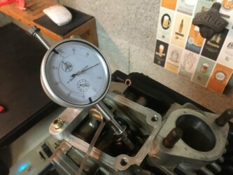 On ressort le bloque piston pour trouver le point mort haut exact, et on applique exactement la même procédure que pour le cylindre horizontal.